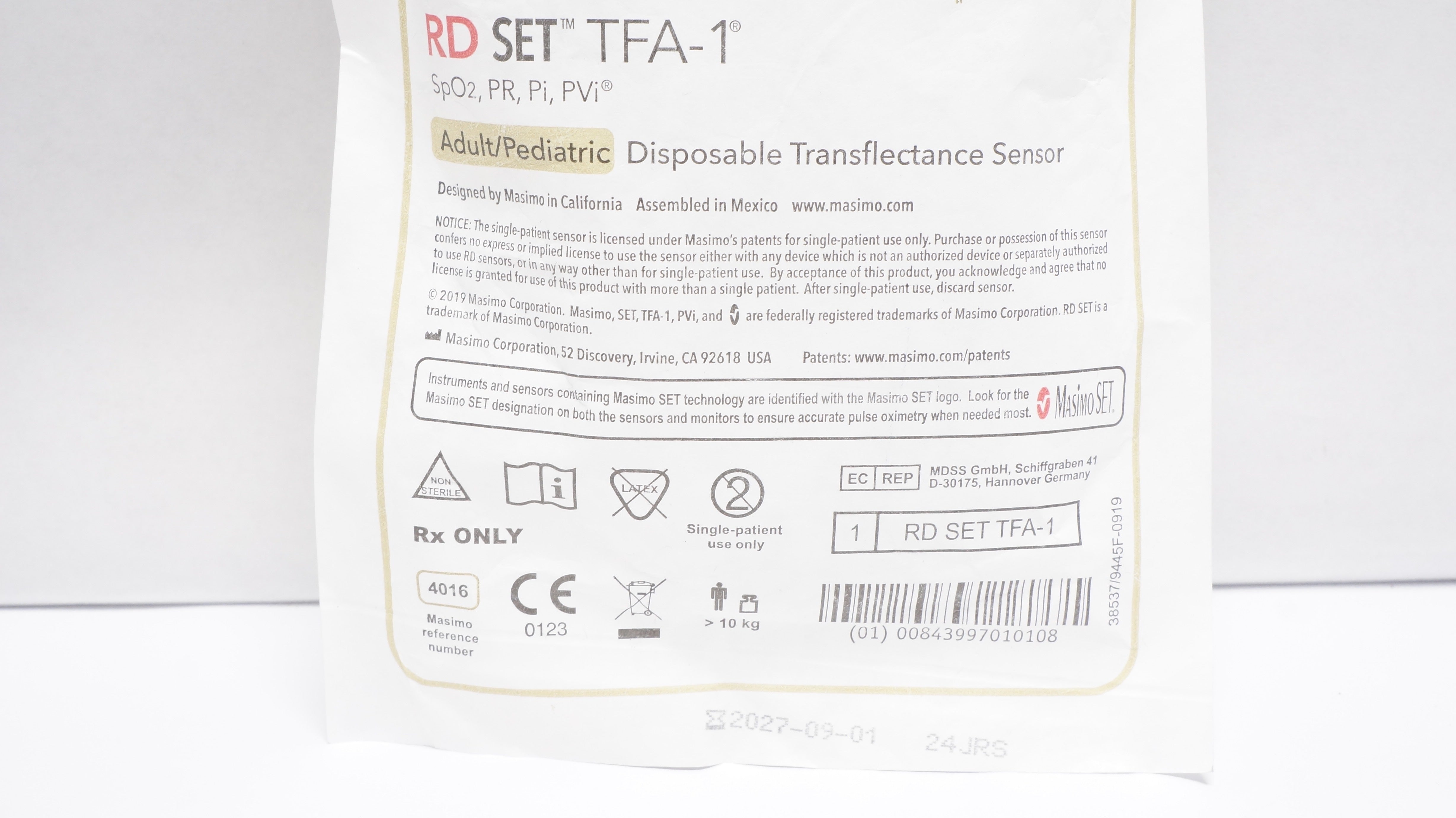 - Masimo 4016 RD Set TFA-1 Adult / Pediatric Transflectance Sensor >10kg