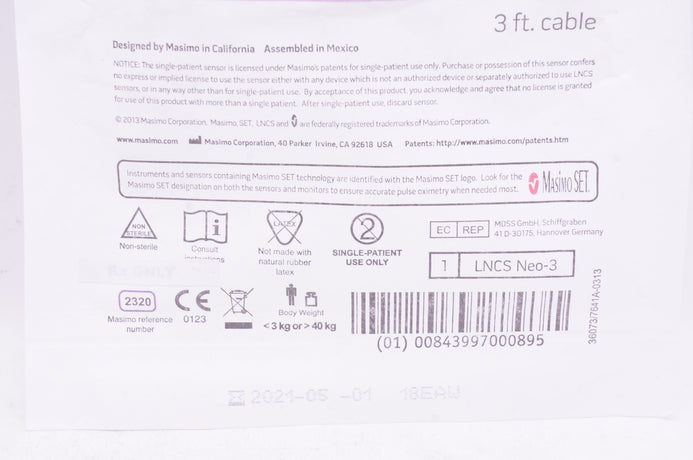 - MasimoSet 2320 LNCS Neo-3 SpO Pulse Oximeter Adhesive Sensor 40kg (x)