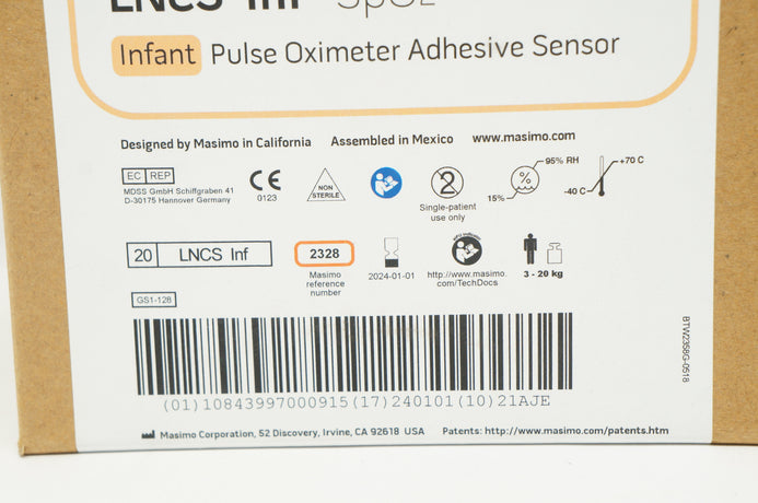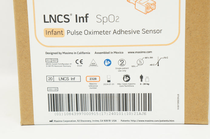 - MasimoSet 2328 LNCS Infant SpO2 Pulse Oximeter Adhesive Sensor, 3-20kg-Box of 20