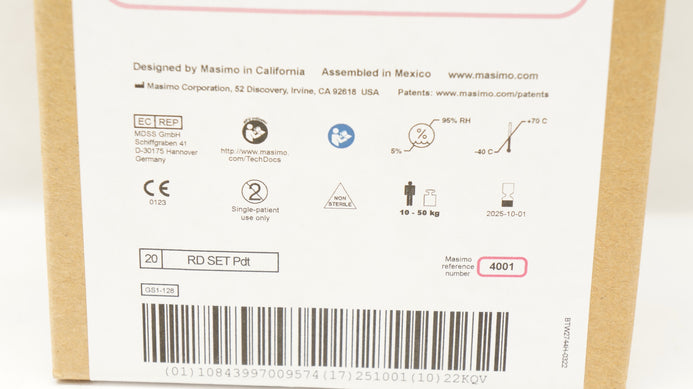 - MasimoSet 4001 SpO2 RD SET Pdt Pulse Oximeter Adhesive Sensor 10-50kg -Box of 19