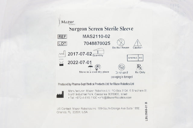 Mazor MAS2110-02 Surgeon Screen Sterile Sleeve