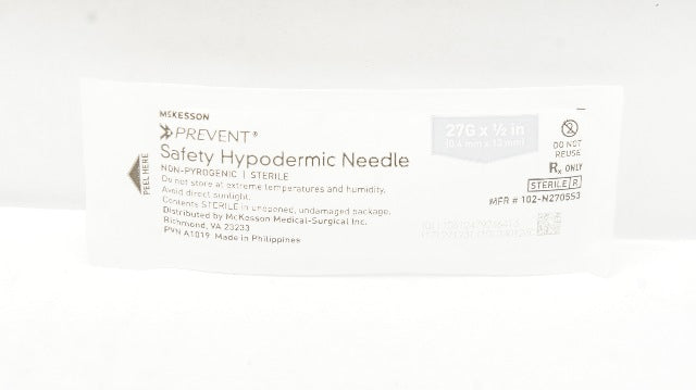 McKesson 102-N2705S3 Prevent Safety Hypodermic Ndle 27G x 1/2inch