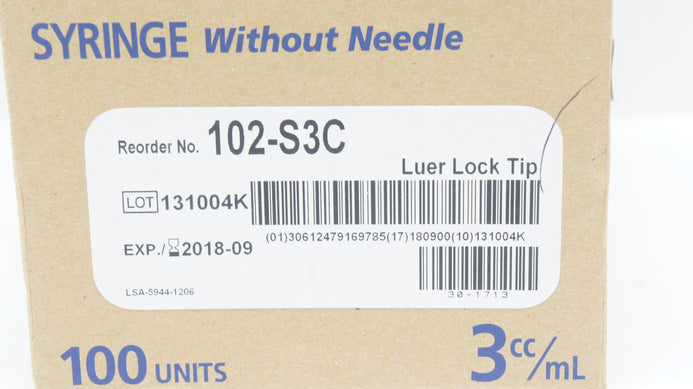 - Mckesson 102-S3C Syringe Without Ndle 3cc/ml Luer Lock Tip (x) - Case of 100