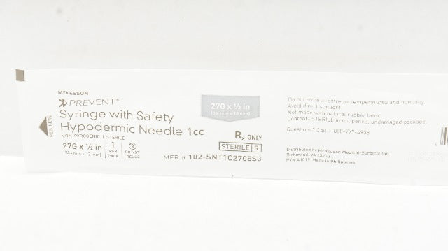 - Mckesson 102-SNT1C2705S3 Prevent Syringe W/Safety Hypodermic Ndle 1cc,27Gx1/2In