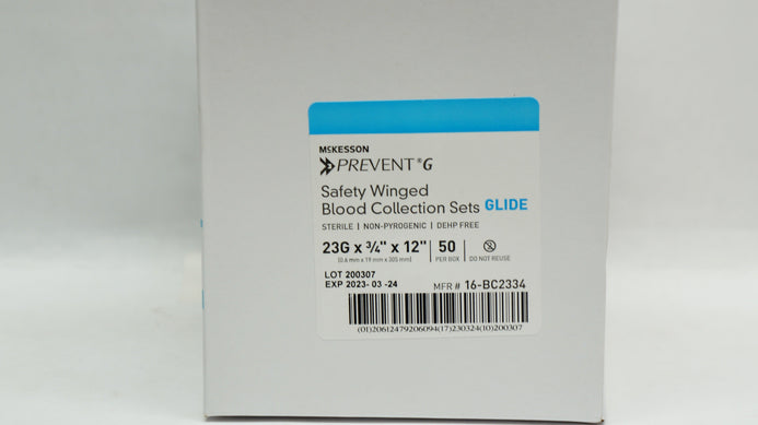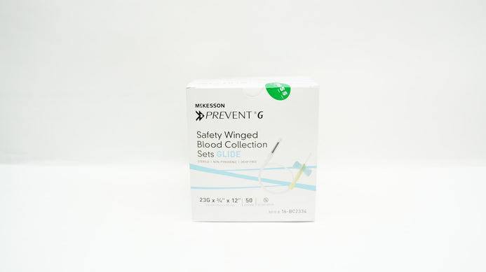Mckesson 16-BC2334 Prevent G Safety Winged Blood Collection 23Gx3/4x12in-Boxof50(x)