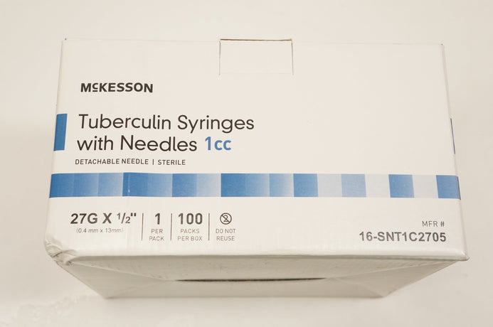 - McKesson 16-SNT1C2705 Tuberculin Syringes W/Ndle 1cc, 27G x 1/2inch - Box of 100