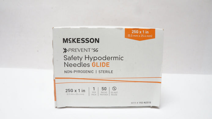 - Mckesson 192-N251S prevent Safety Hypodermic Ndles Glide 25G x 1inch - Box of 50