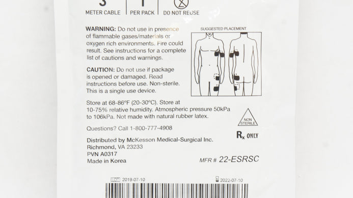 - McKesson 22-ESRSC ArGent Adult Patient Return Electrode with 10Ft. Cable (x)