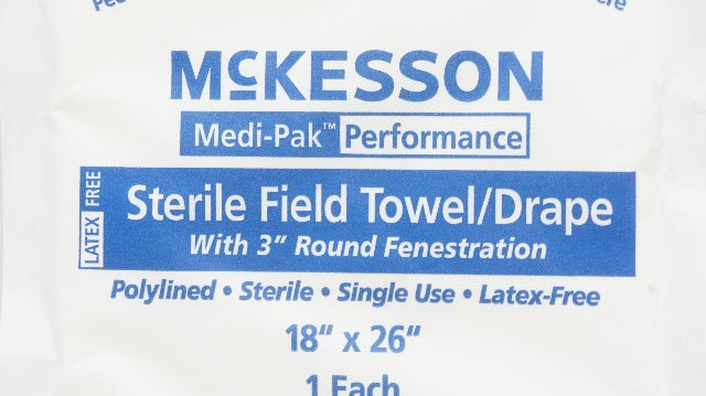 - Mckesson 25-517 Medi-Pak Filed Towel/Drape w/3inch Fenestration 18 x 26inch(x)