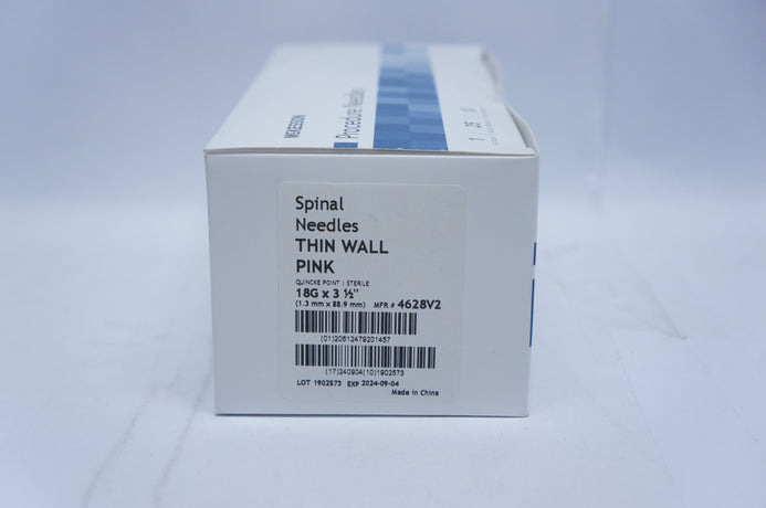 McKesson 4628V2 Procedure Spinal Ndles Thin Wall Pink 1.3mm x 88.9mm -Box of 25