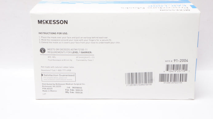 Mckesson 91-2004 Ear-Loop Procedure Masks Classic Style Blue