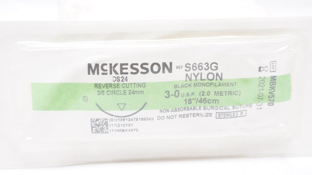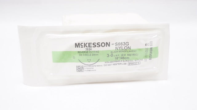 - McKesson S663G 3-0 Nylon, DS24, 3/8c 24mm Reverse Cutting, 18inch (x)