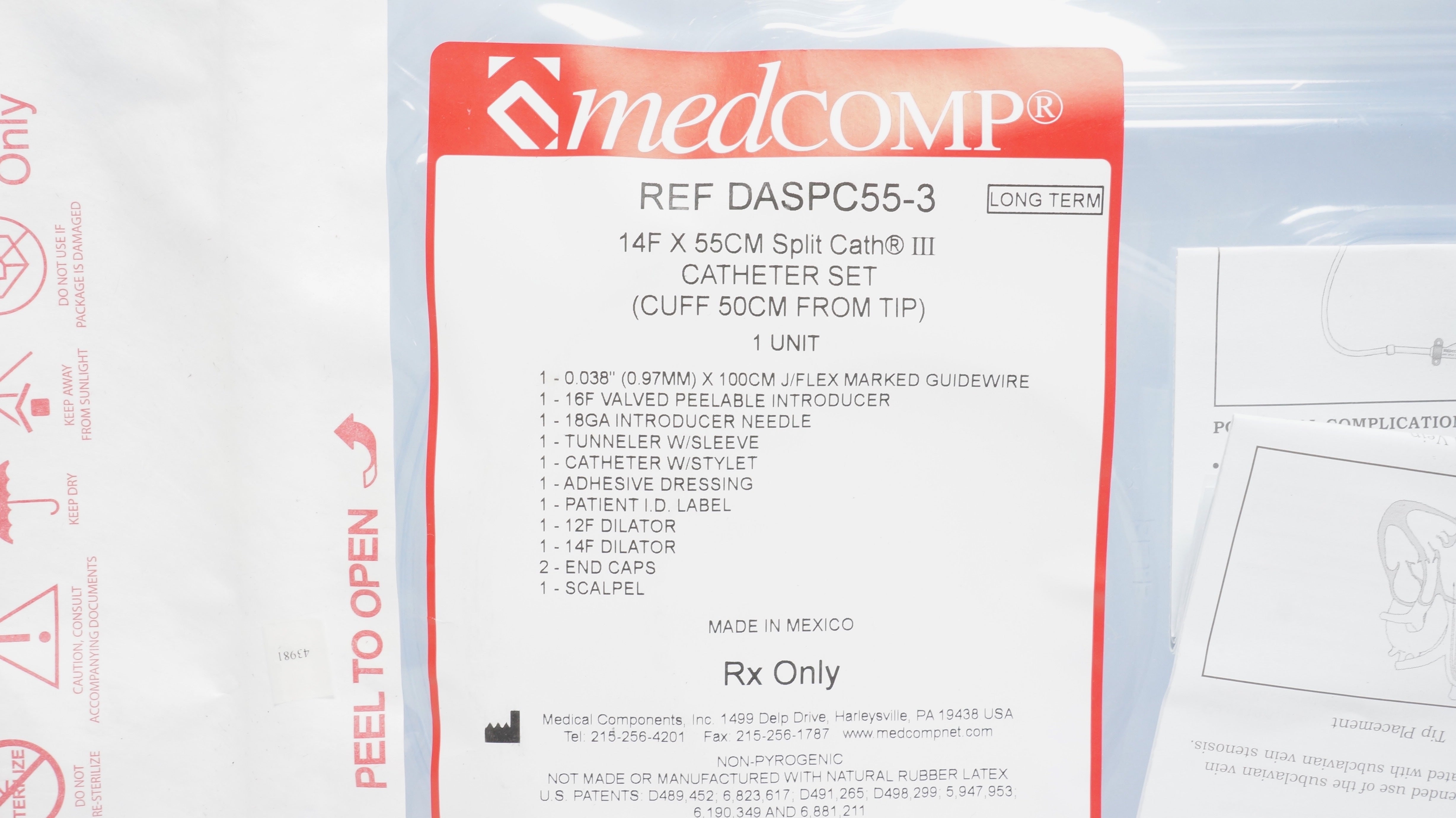 Medcomp DASPC55-3 SPLIT CATH III Cath. Set, 14F x 55cm (x)