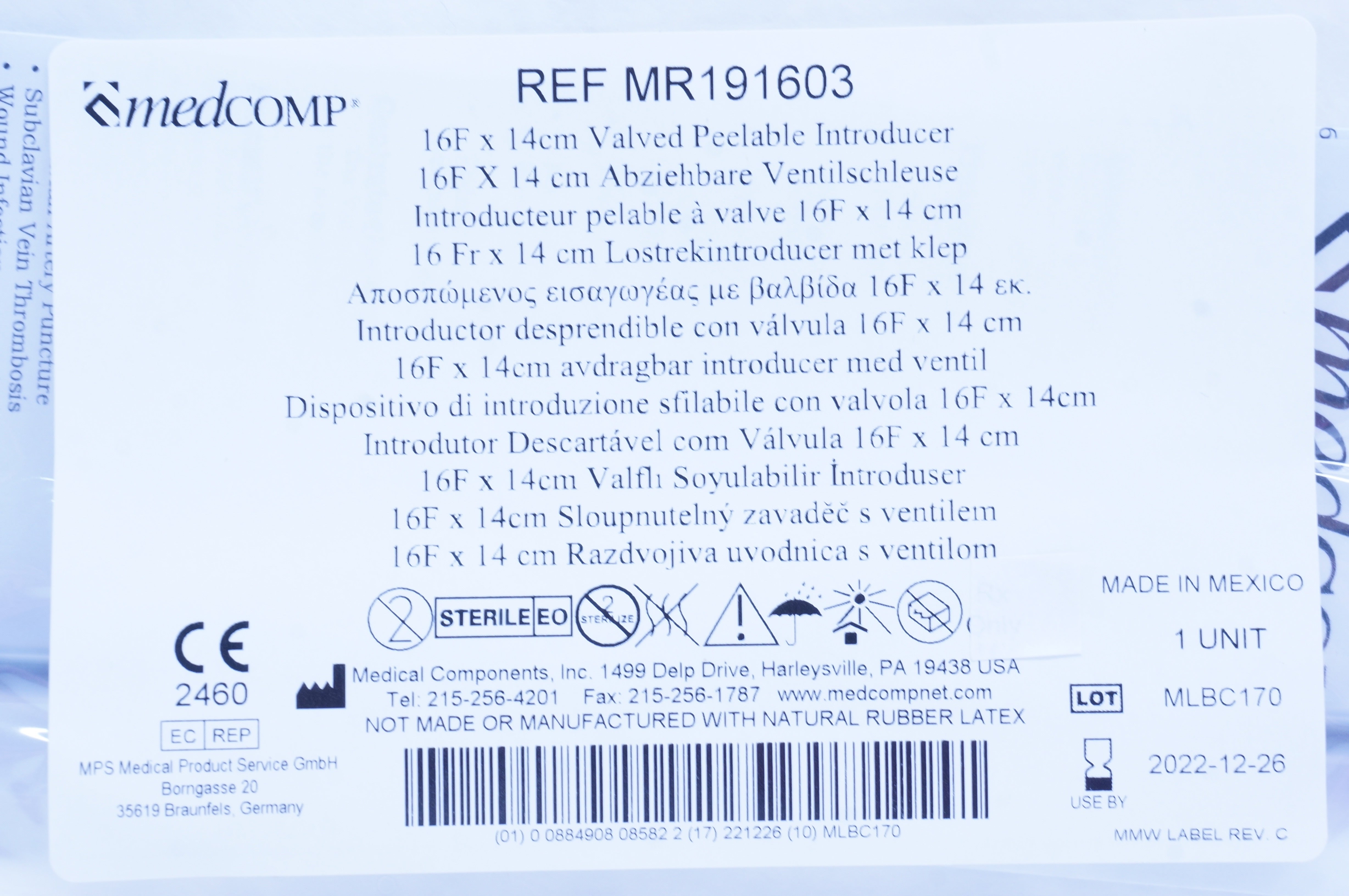 MedComp MR191603 Valved Peelable Introducer 16F x 14cm