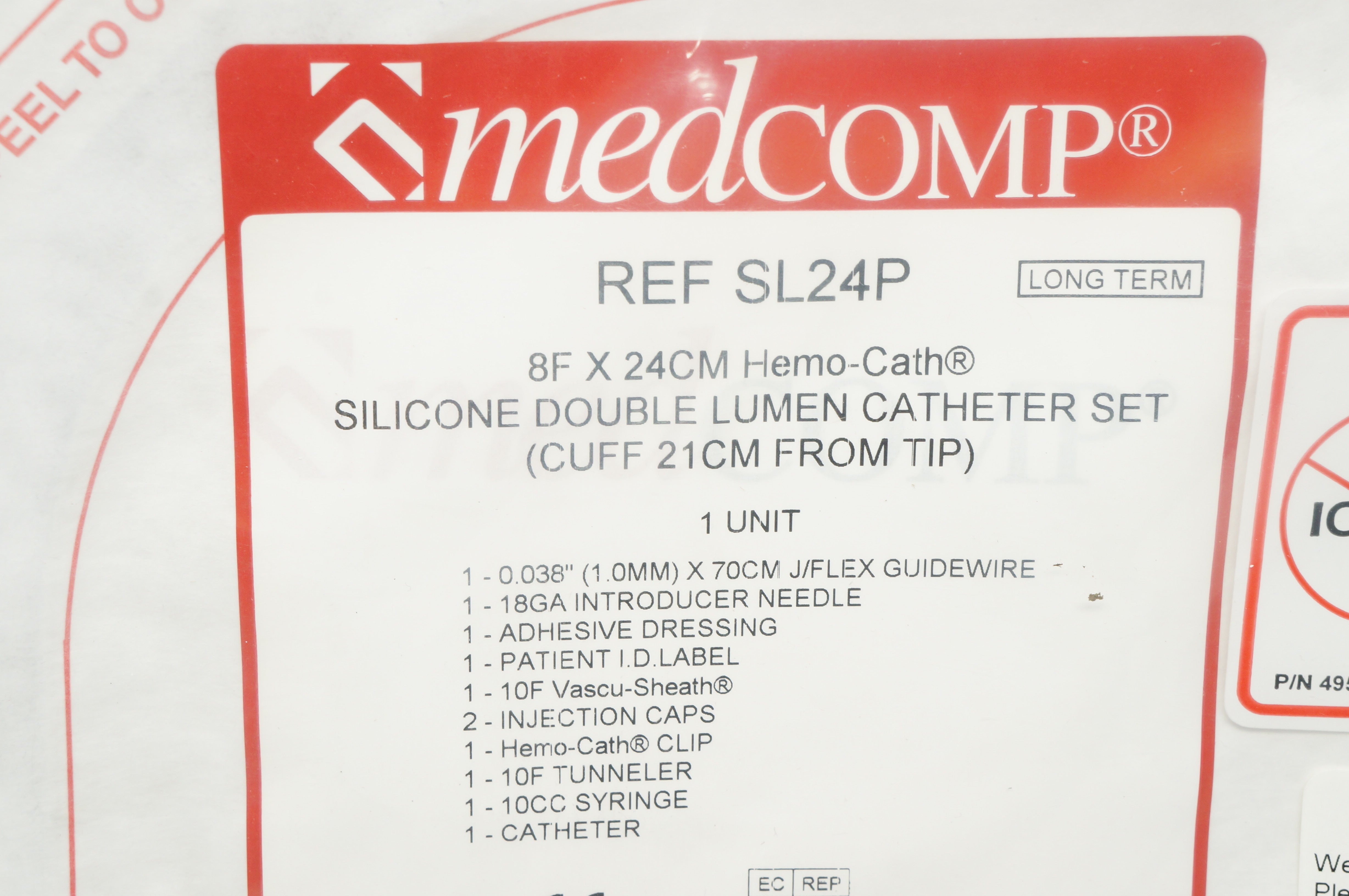 MedComp SL24P Hemo-Cath Silicone Double Lumen Catheter Set 8F x 24cm (Cuff 21cm From Tip)