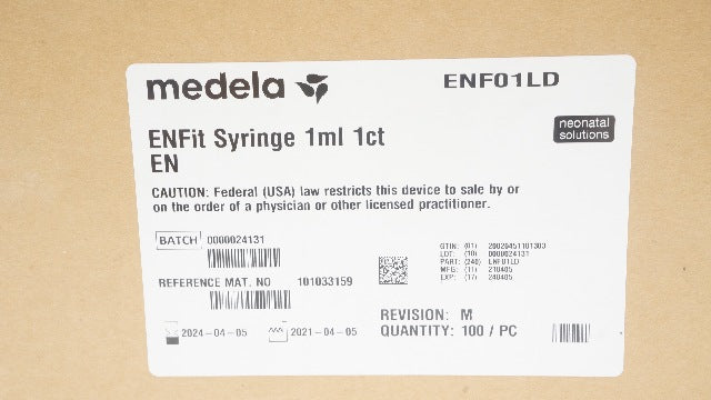 Medela ENF01LD ENFit Enteral Syringe 1mL (x) - Box of 100
