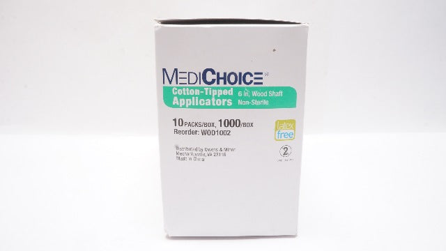 MediChoice W0D1002 Owens & Minor Cotton-Tipped Applicators 6In - Box of 10 Packs