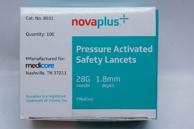 - MediCore 8031 NovaPlus Pressure Activated Safety Lancets 28G x 1.8mm -Box of 100