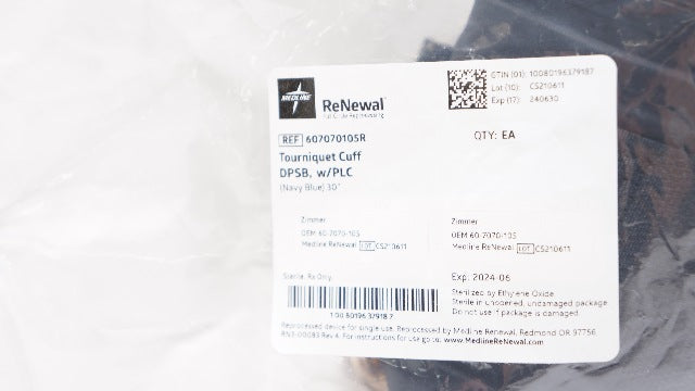 Medline 607070105R ReNewal Zimmer Tourniquet Cuff DPSB w/PLC, Navy Blue, 30inch