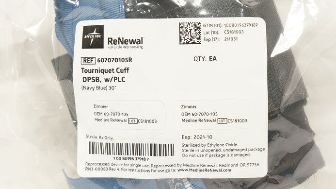 - Medline 607070105R ReNewal Zimmer Tourniquet Cuff DPSB w/PLC, Navy Blue, 30in(x)