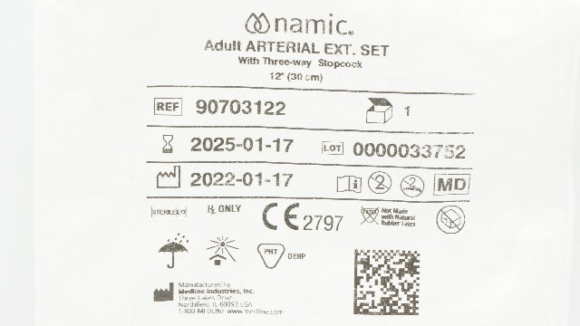 Medline 90703122 Namic Adult Arterial Ext. Set W/Three-way Stopcock 12inch (x)