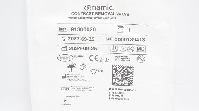 - Medline 91300020 Namic Contrast Removal Valve