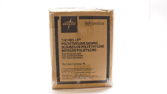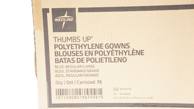 Medline CRI5000 Thumbs Up Polyethylene Gowns, Regular Large, Blue - Case of 75