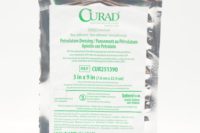 Medline CUR251390 Non-Adherent Curad Petrolatum Dressing 3inch x 9inch