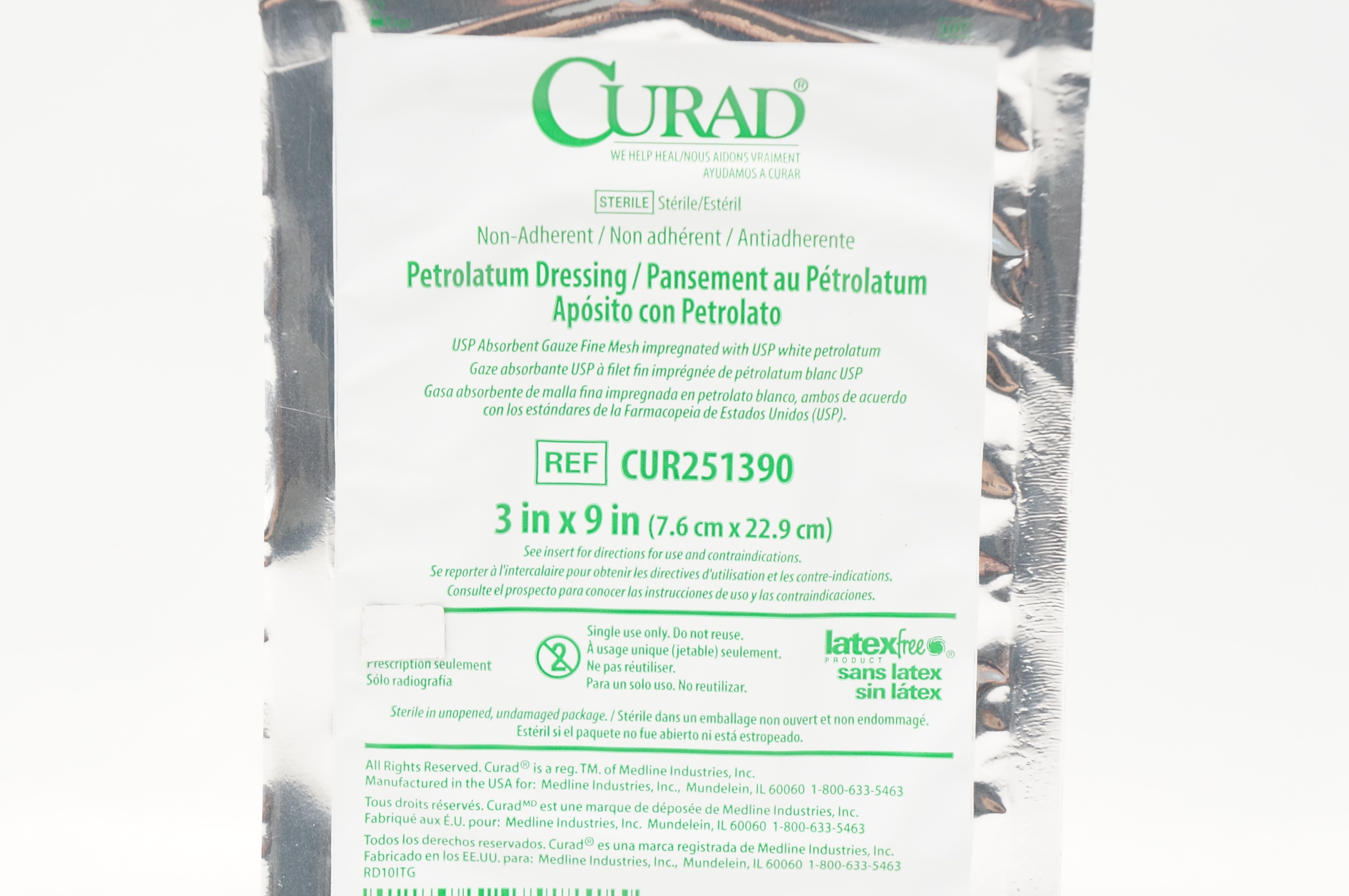 - Medline CUR251390 Non-Adherent Curad Petrolatum Dressing 3inch x 9inch