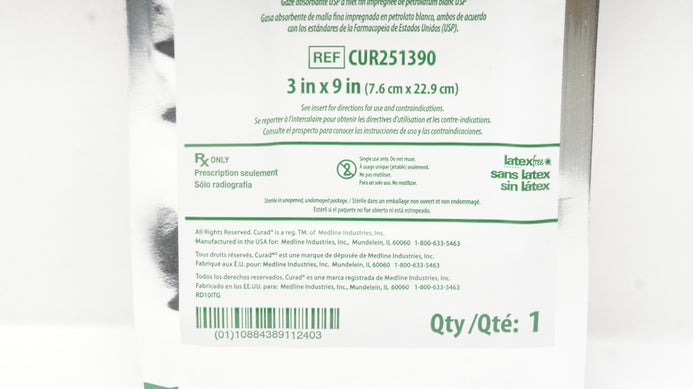 Medline CUR251390 Non-Adherent Curad Petrolatum Dressing 3inch x 9inch (x)