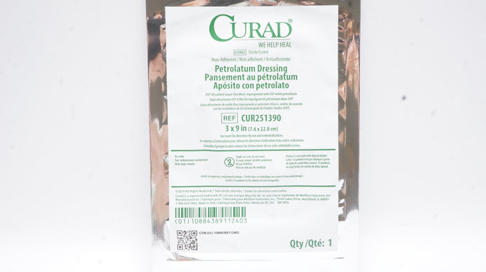 - Medline CUR251390 Non-Adherent Curad Petrolatum Dressing 3inch x 9inch (x)