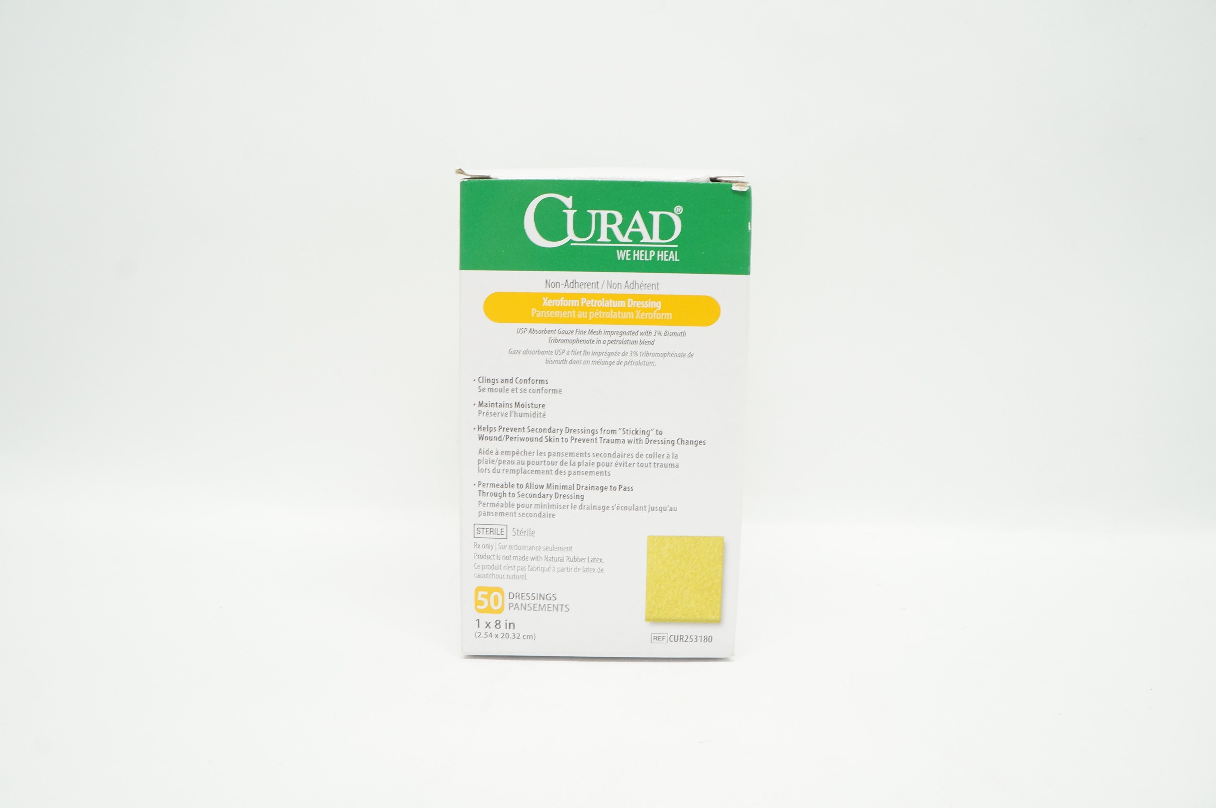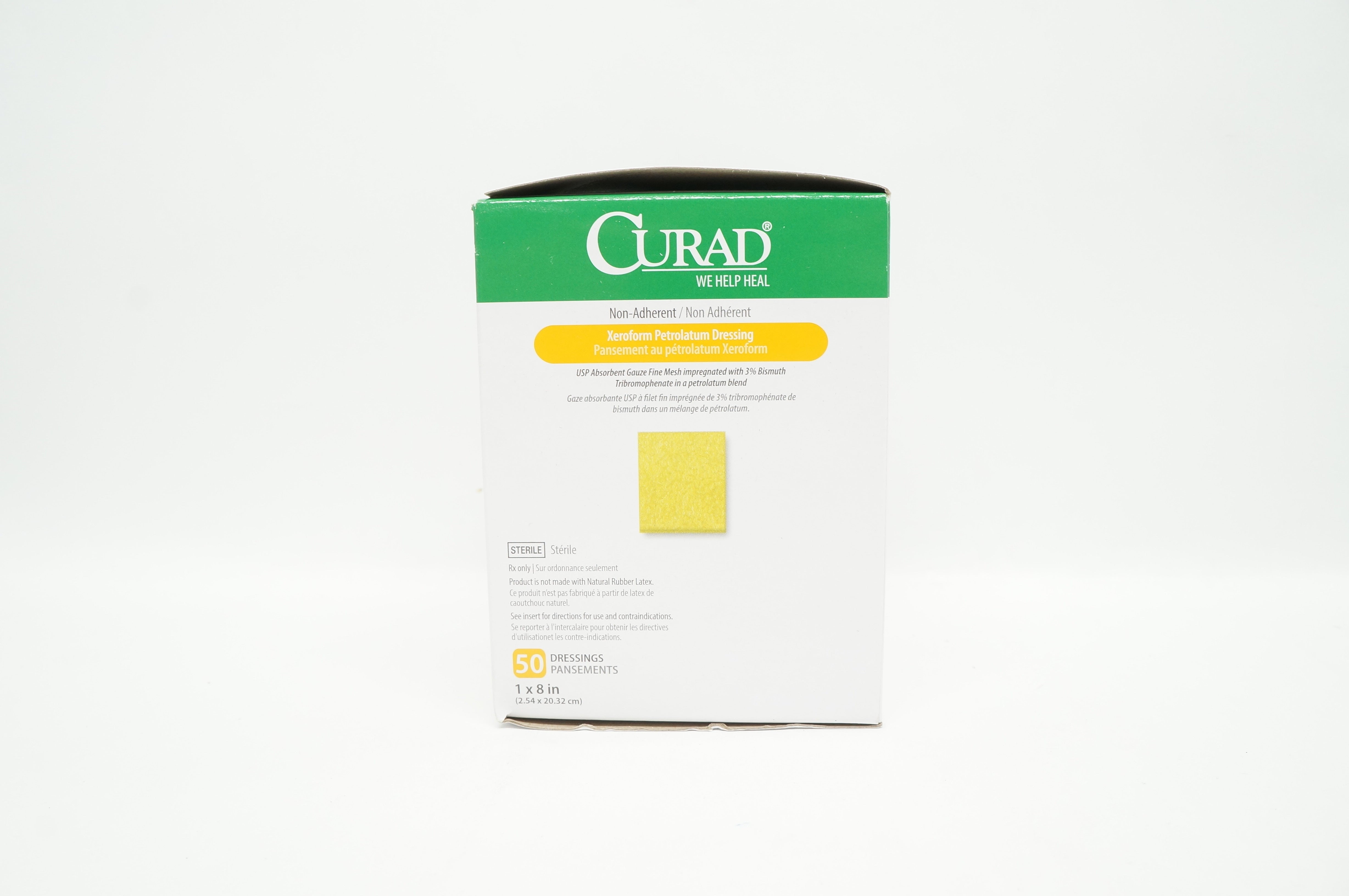 - Medline CUR253180 Curad Xeroform Petrolatum Dressing 1inch x 8inch - Box of 50