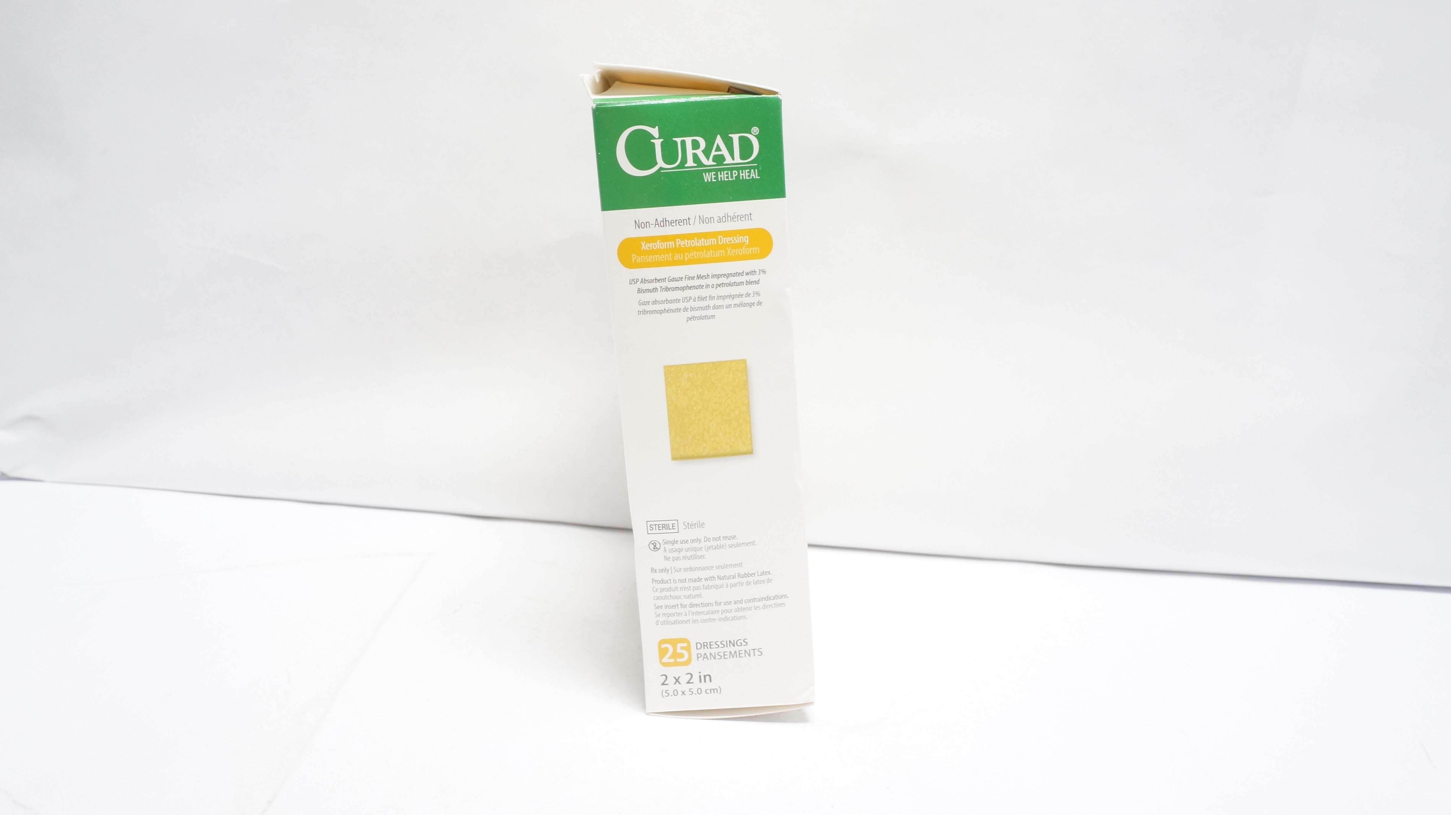 Medline CUR253220 Curad Non-Adherent Xeroform Petrolatum Dressing 2in. x 2in.