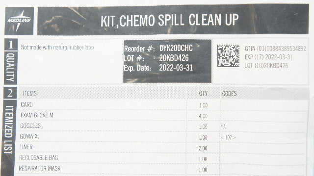 Medline DYK200CHC Kit, Chemo Spill Clean Up (x)