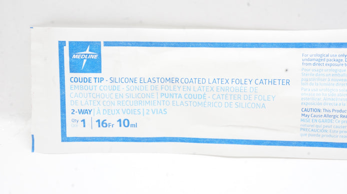 - Medline DYND11216 Coude Tip-Silicone Elastomer Coated Foley Cath. 16Fr x 10ml