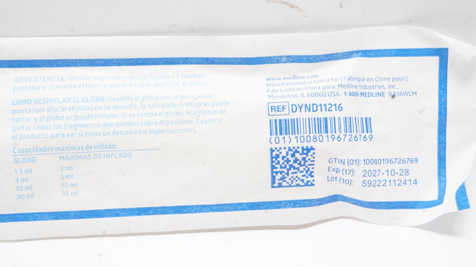 Medline DYND11216 Coude Tip-Silicone Elastomer Coated Foley Cath. 16Fr x 10ml