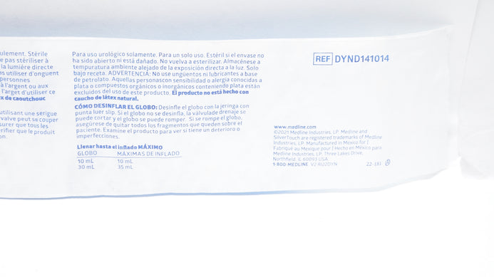 Medline DYND141014 SilverTouch 100% Silicone Foley Cath. 2-Way 14Fr x 10mL