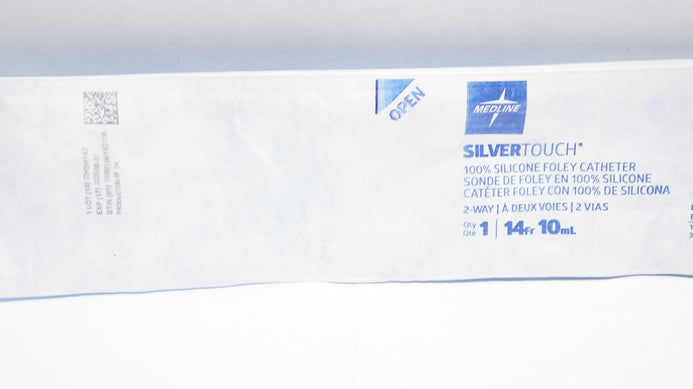 Medline DYND141014 SilverTouch 100% Silicone Foley Catheter 2-Way 14Fr x 10mL