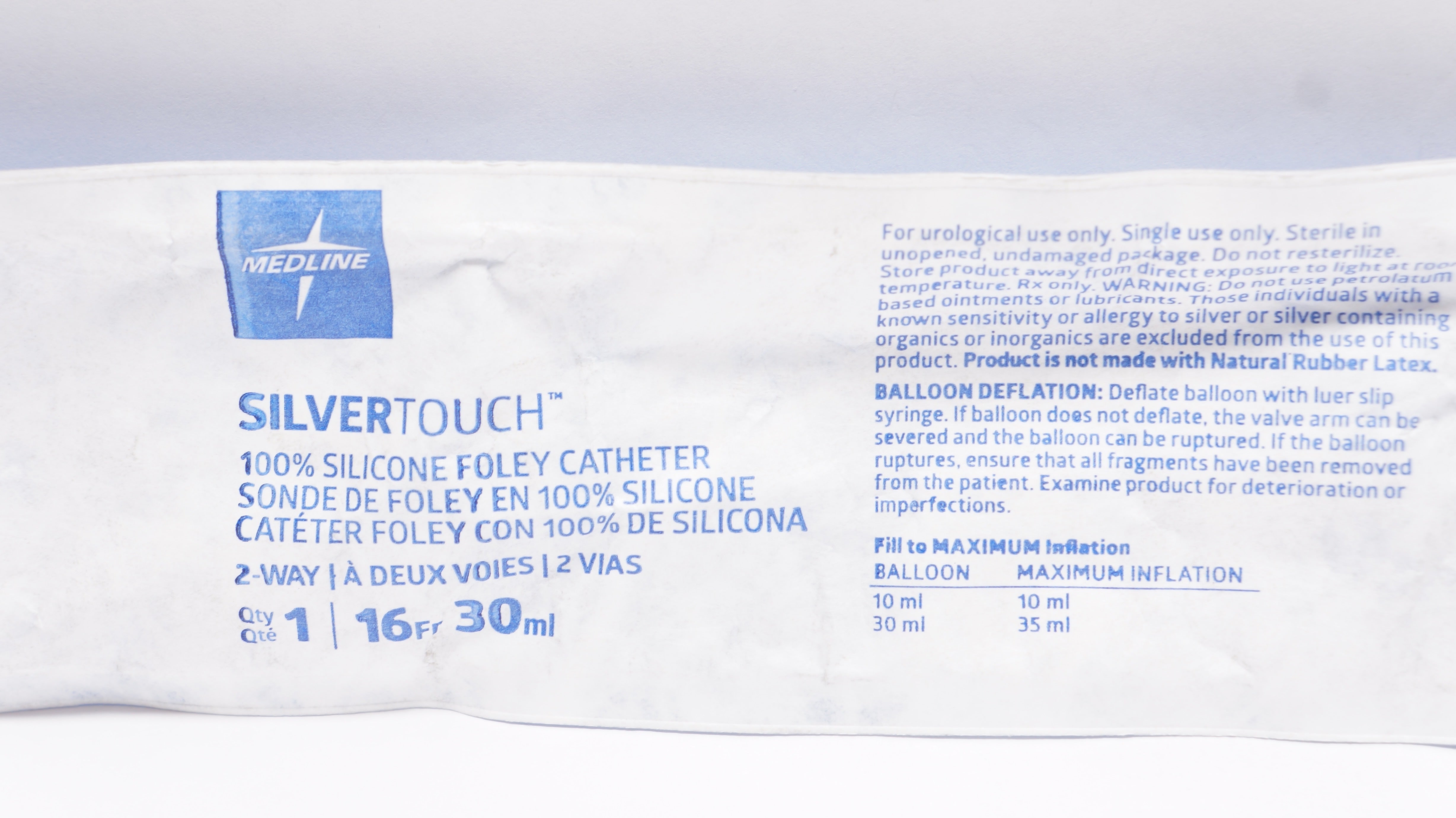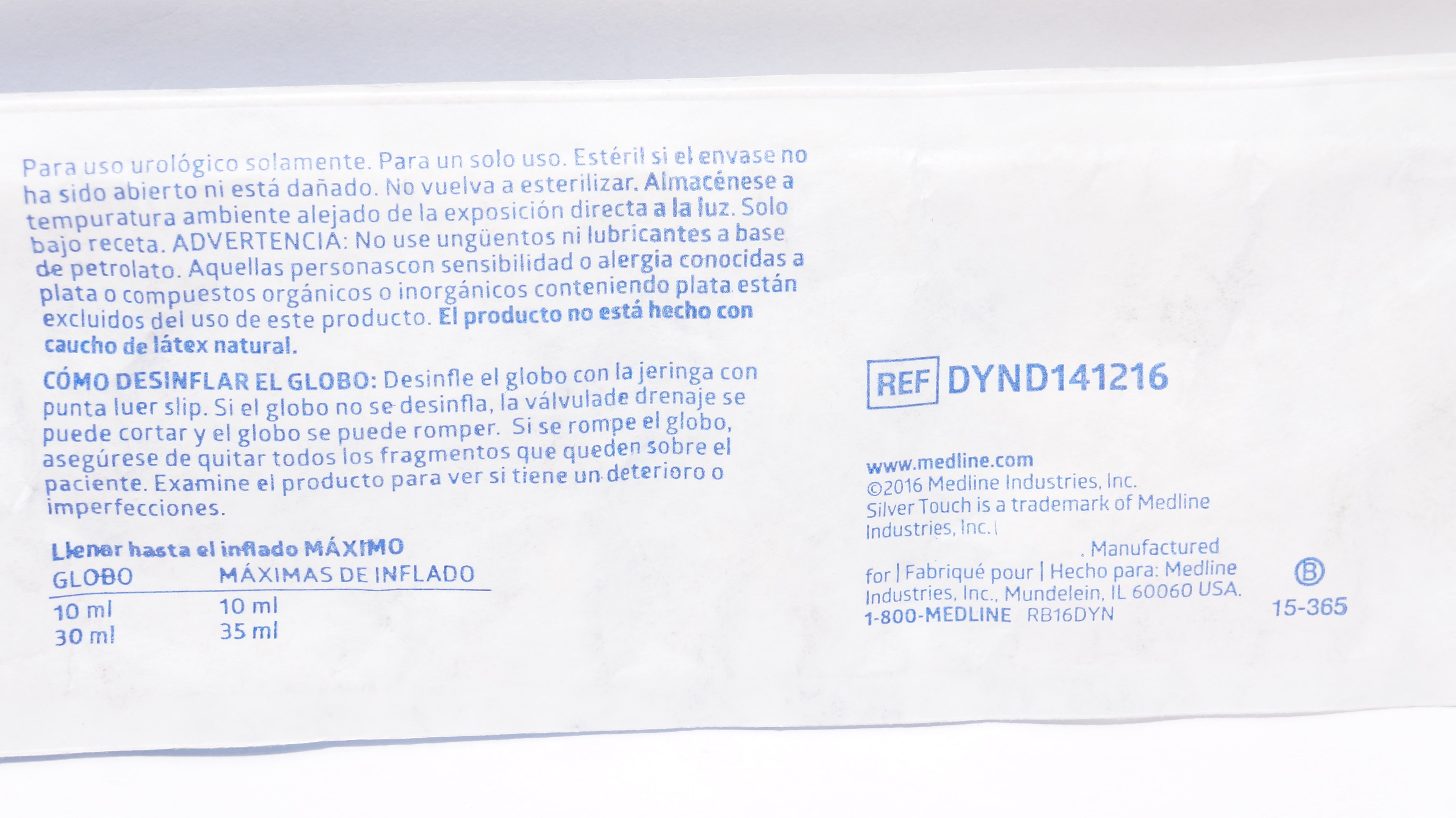 - Medline DYND141216 Silvertouch 100% Silicone Foley Cath. 2-Way 16Fr x 30ml