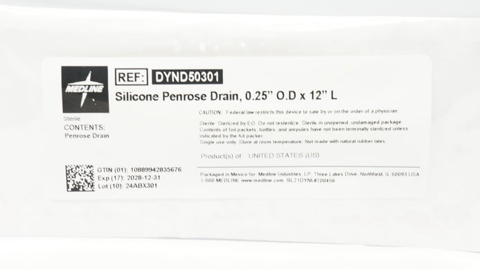 - Medline DYND50301 Silicone Penrose Drain, 0.25inch x 12inch