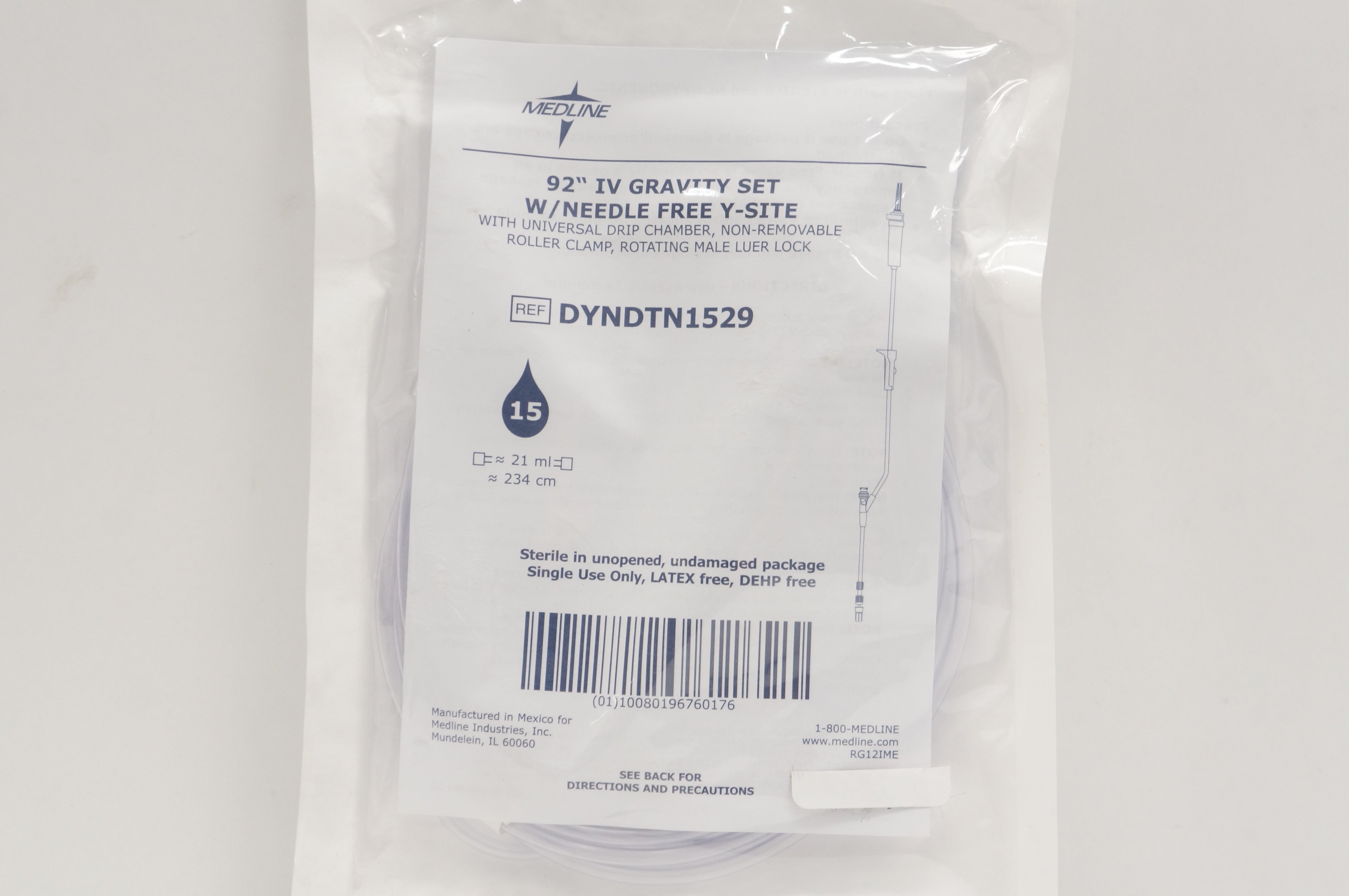 Medline DYNDTN1529 92inch IV Gravity Set W/Ndle Free Y-Site 21ml, 234cm