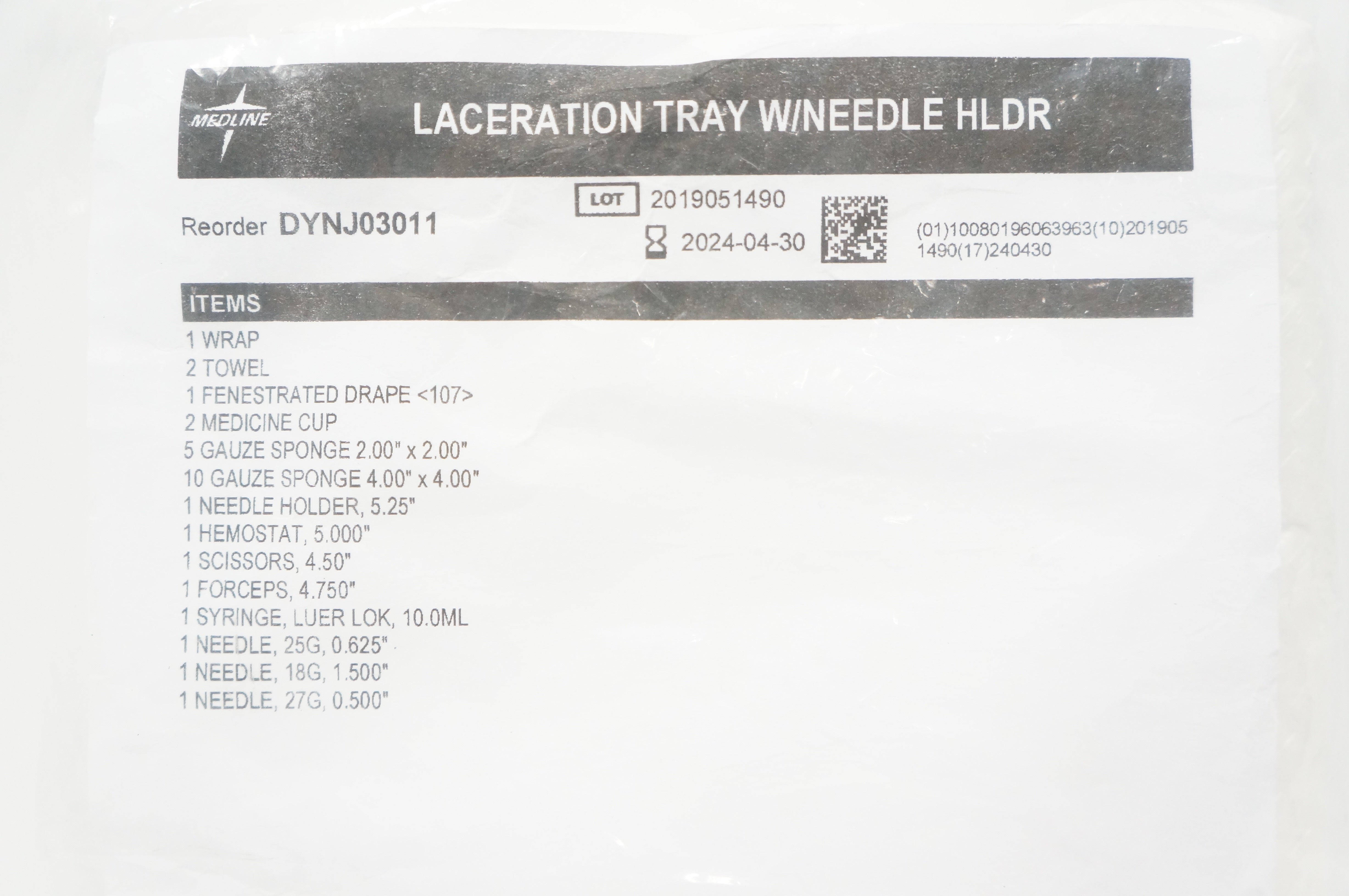 - Medline DYNJ03011 Laceration Tray W/Needle HLDR
