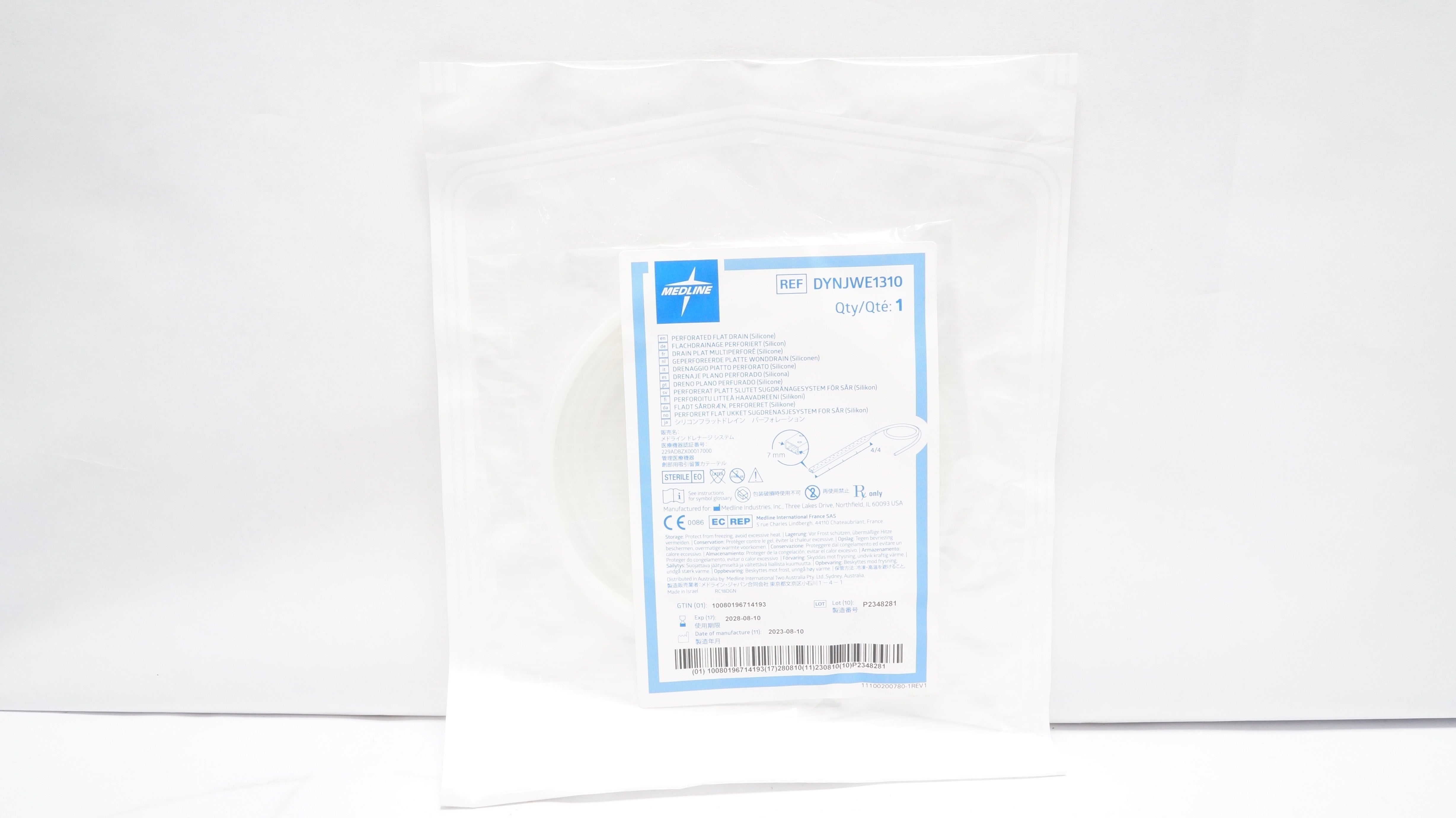 Medline DYNJWE1310 Perforated Silicone Flat Drain 7mm x 4/4cm