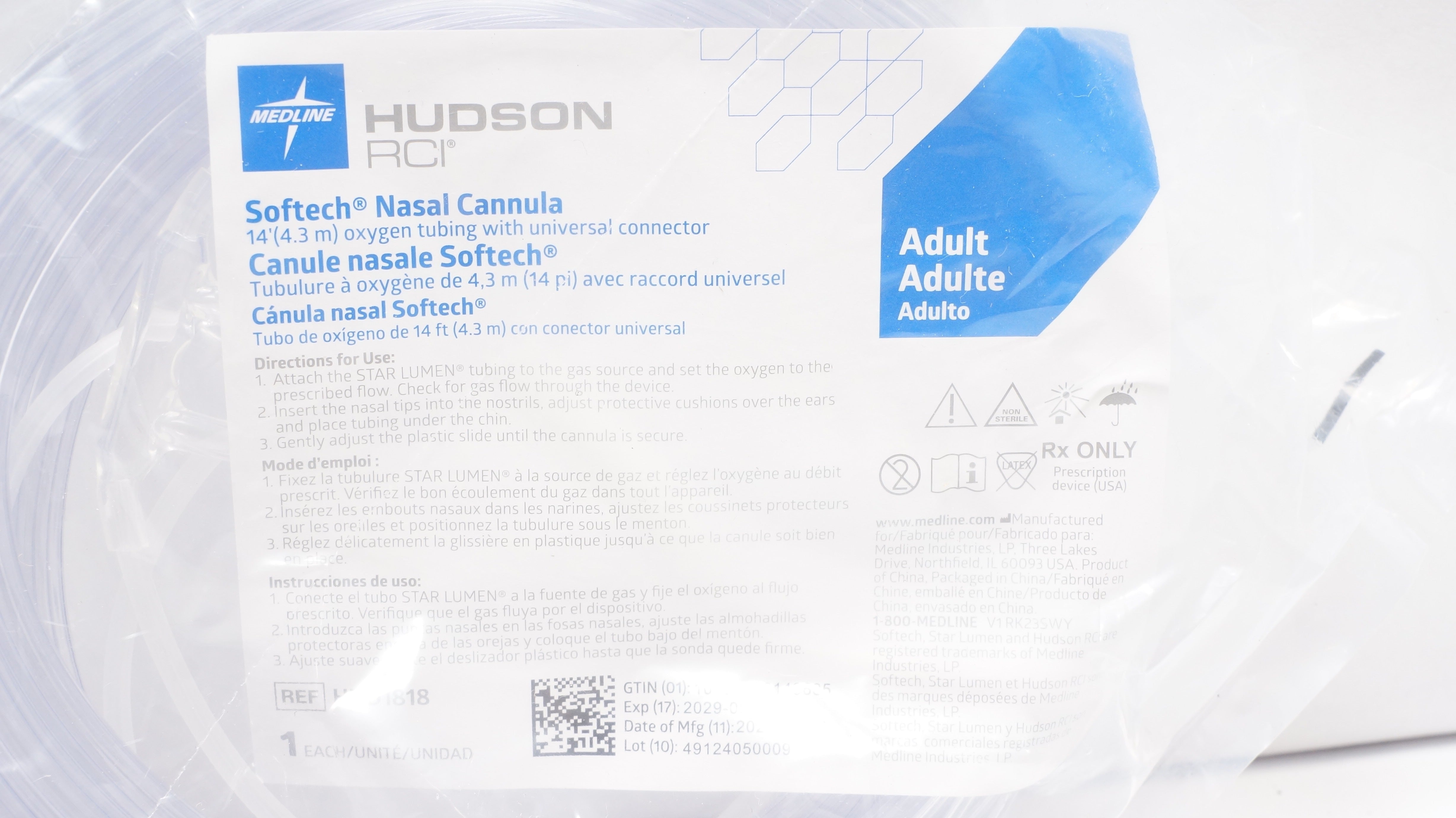 Medline HUD1818 Hudson RCI Softech Nasal Cannula W/Standard Connector Adult 14ft