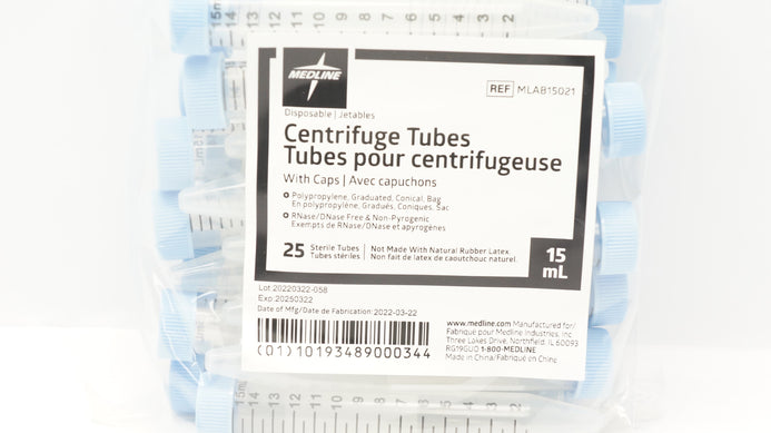 - Medline MLAB15021 Centrifuge Tubes w/Caps, Disposable, 15mL - Pack of 25