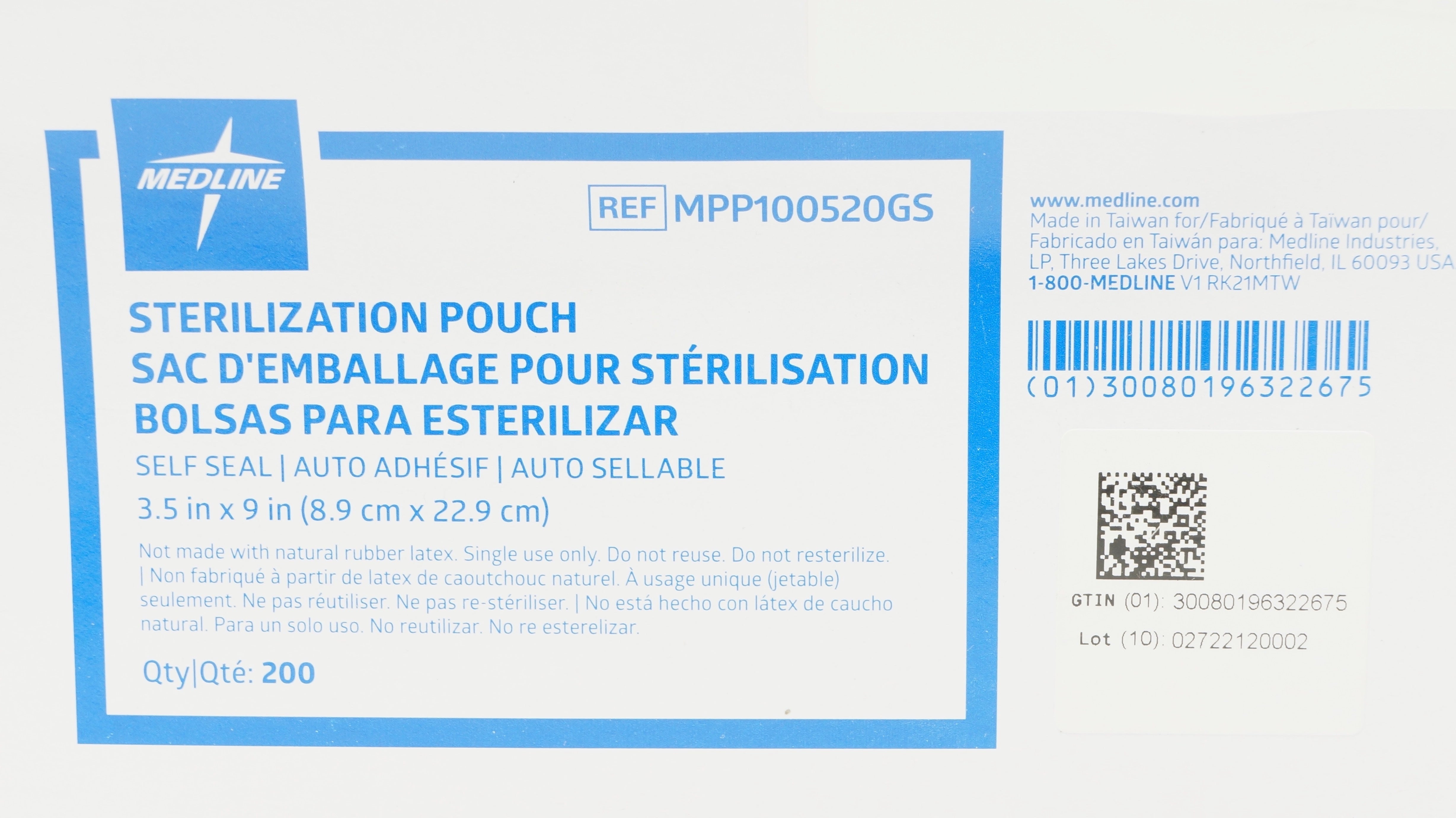 - Medline MPP100520GS Sterilization Pouch Self Seal 3.5inch x 9inch - Box of 200
