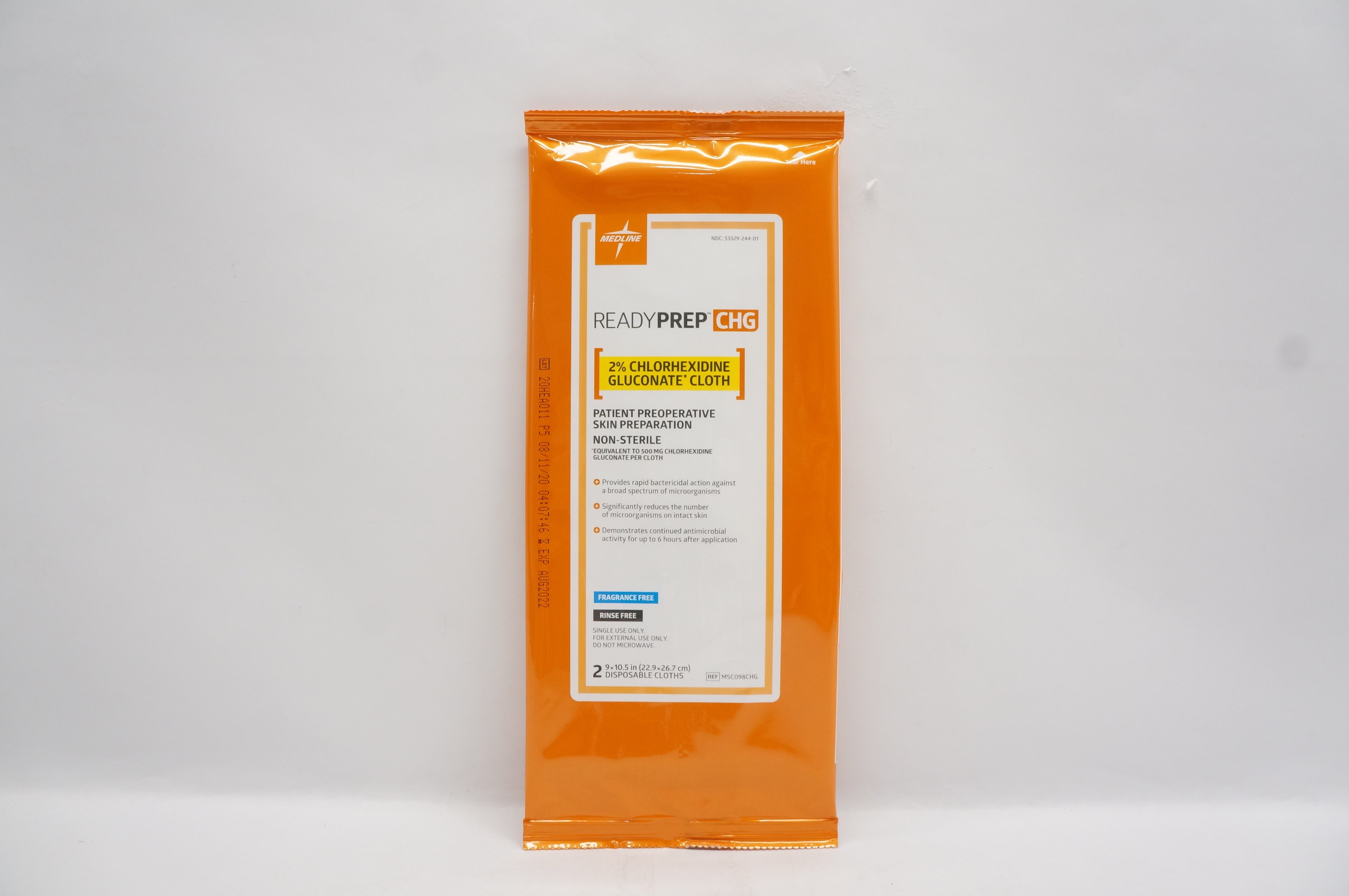 Medline MSC098CHG ReadyPrep 2% CHG Disposable Cloths 9 x 10.5inch - Pack of 2