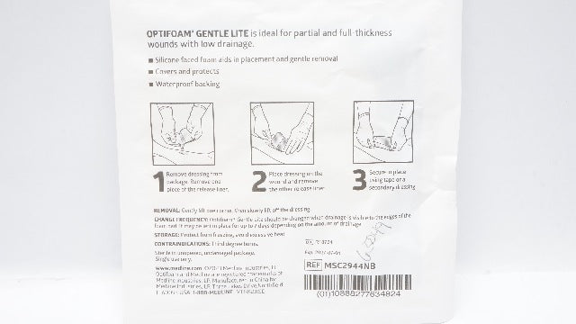 Medline MSC2944NB Optifoam Gentle Lite NB Faced Foam Wound Dressings 4inch x 4inch