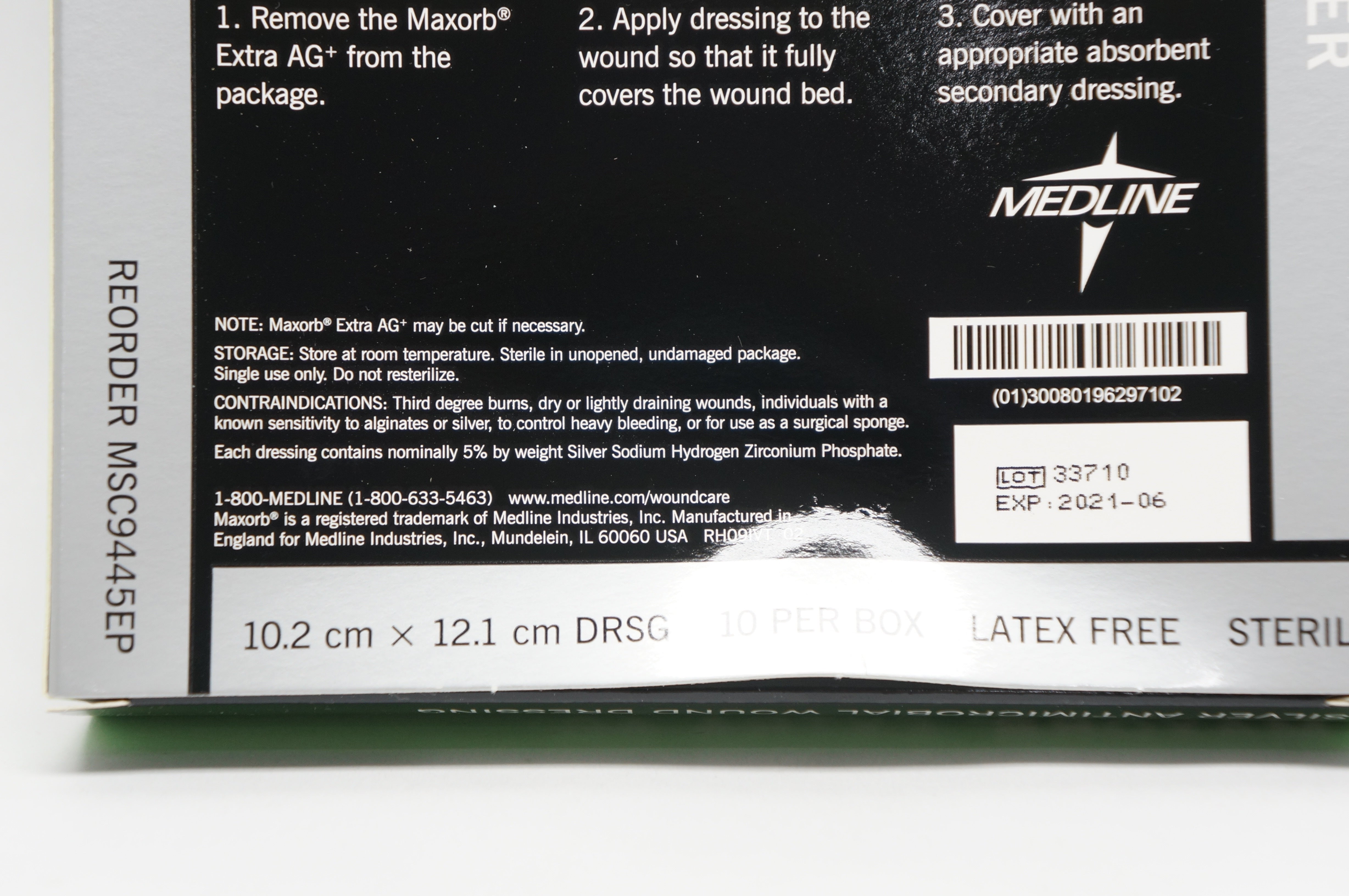 - Medline MSC9445EP Maxorb Extra AG+ Silver Dressing 4 x 4.75inch