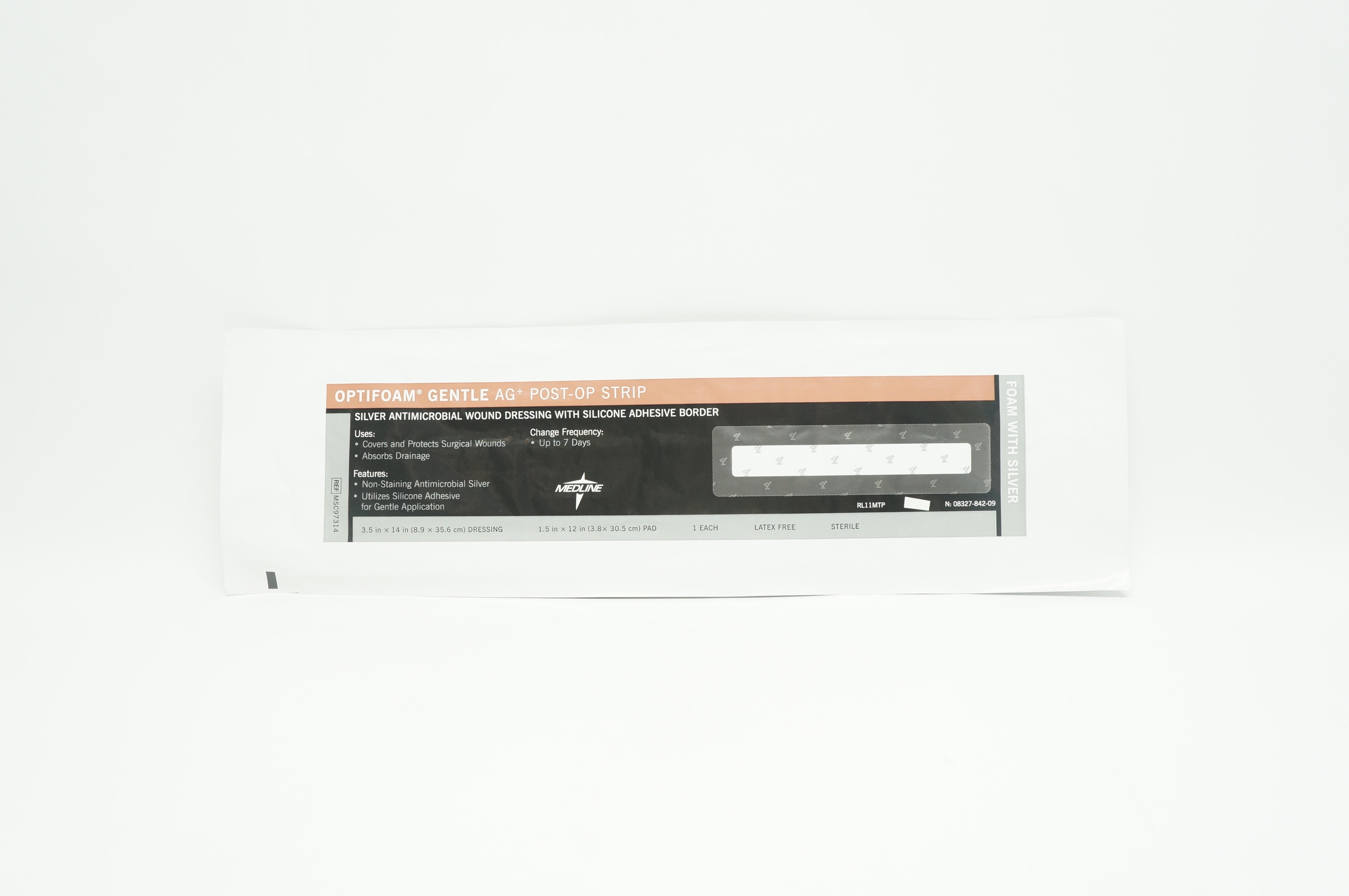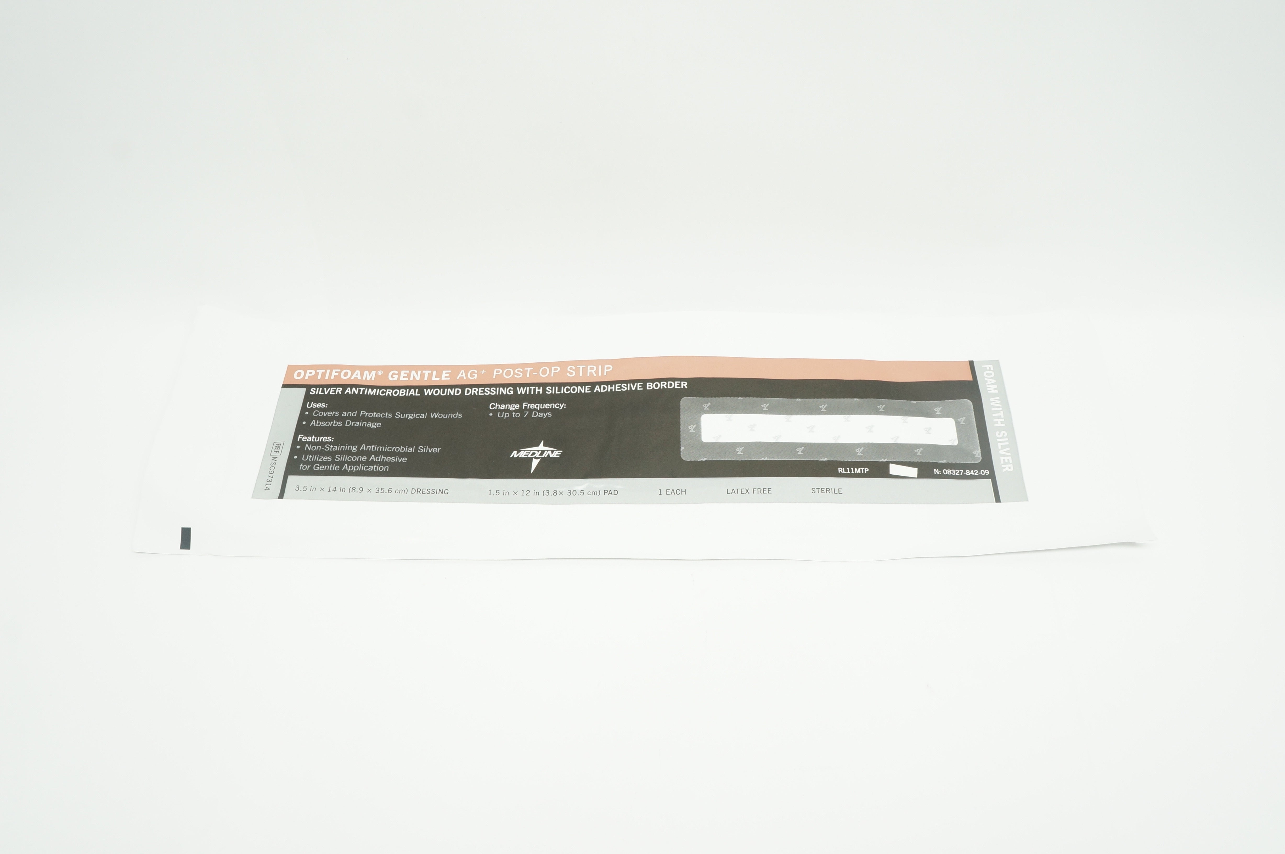 - Medline MSC97314 Optifoam Silver Antimicrobial Wound Dressing 3.5in. x 14in. (x)